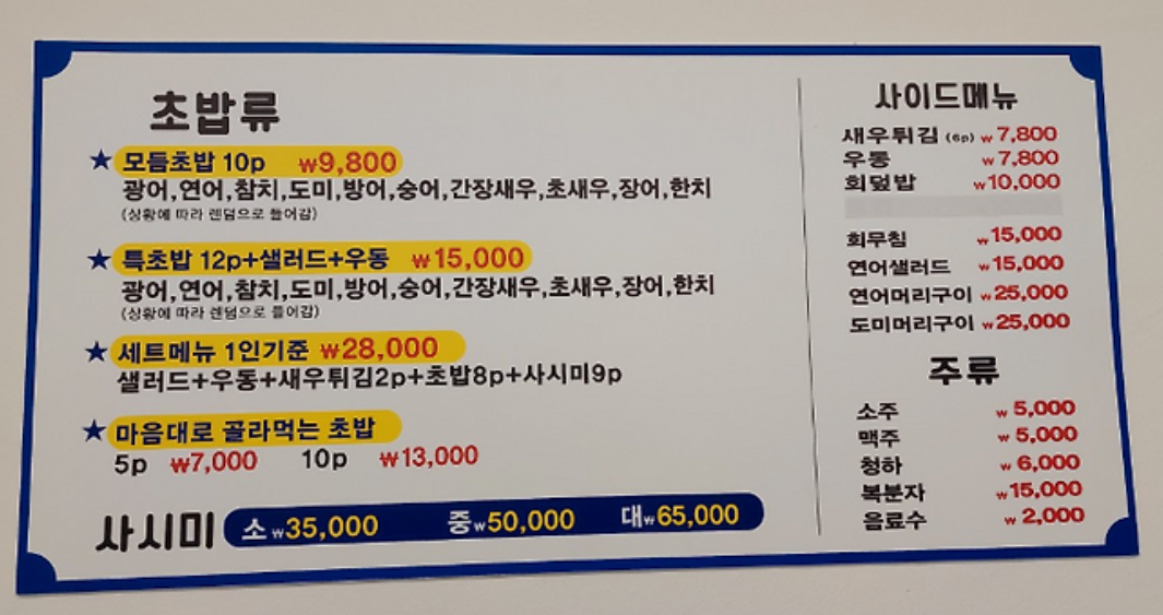 🍣 초밥나라 대표 메뉴 & 가격 (가성비 대박!)